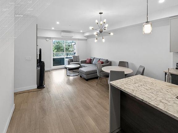 Amson Square, where comfort meets style. This 3-bedroom, 2-bath South-facing corner home offers 1,084 sqft of open, sun-filled living space with two master bedrooms for added versatility. Enjoy a chef-inspired kitchen with BOSCH appliances, a waterfall island, and elegant cabinetry. The home also features in-suite storage, two parking stalls, A/C with heat pump, custom closets, and a built-in entertainment unit. Entertain friends and family in the spacious party room equipped with a kitchen, TV, and washrooms—seamlessly connected to a patio and kids’ playground for summer fun. Also offering a rooftop patio with beautiful views and convenient access to schools, restaurants, shopping, and transit, ideal for families or first-time buyers seeking comfort and community living.