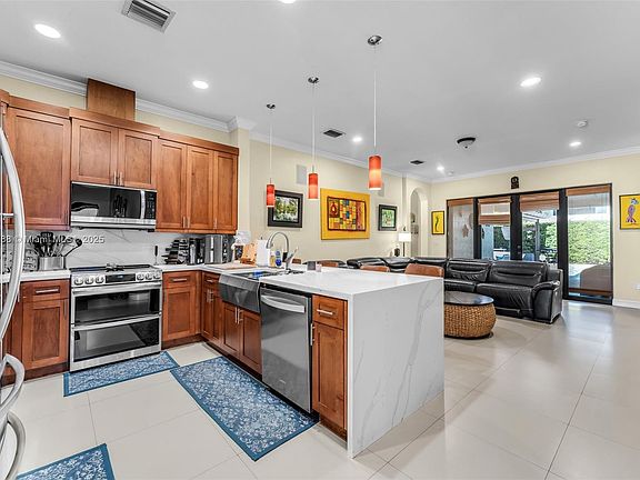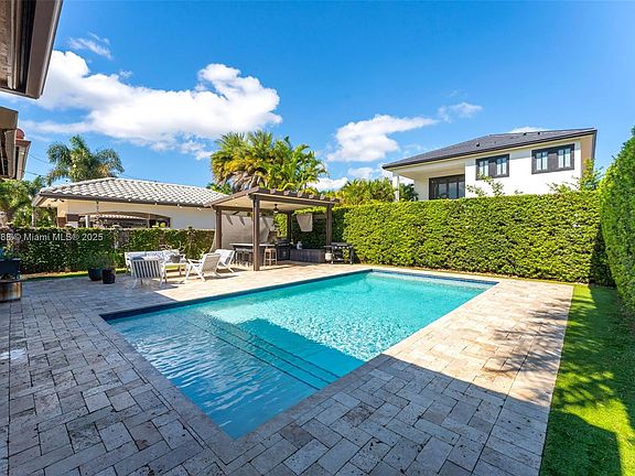 Stunning 4 bed & 3 bath single story home with 2 car garage + storage space featuring the area's most desired model layout and build with oversized ceilings and open, light-filled interior. Updated kitchen with stainless steel appliances, quartz countertops and clear sightlines to the pool and yard. Enjoy a 2017 saltwater pool, covered patio providing shade and outdoor kitchen perfect for entertaining. Home also offers impact windows and doors throughout, smart home throughout, newer AC and a large 7,000 SF lot. Move-in ready, elegant and built for indoor-outdoor Miami living.