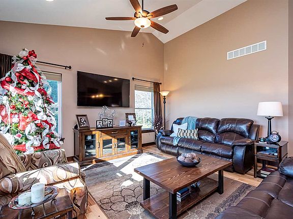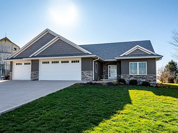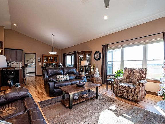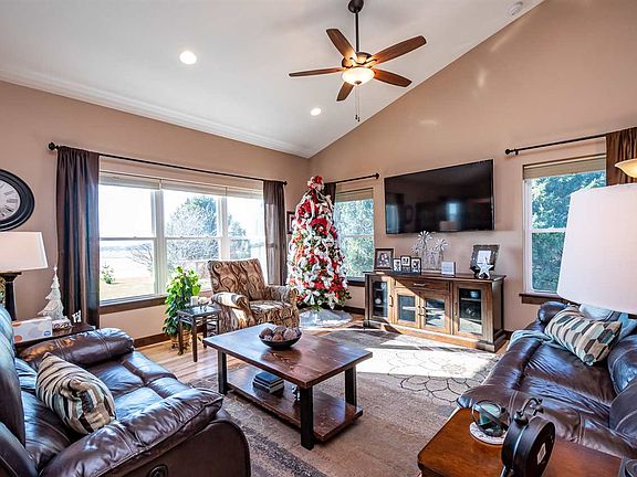Beautiful 2014 custom built ranch home with upgrades you will love! 5 car attached heated garage with 4 doorways, (3 overhead) & half bath with zero entry to home. Inside you will find a magnificent Kitchen featuring large Granite Island, Granite Counter tops and great walk in pantry & Vaulted Ceiling. Living/Dining Room combo with hardwood floors and access to deck which provides some amazing views! Main floor Master bedroom offers a Jacuzzi and Tiled shower in addition to dual sinks and walk in closet.