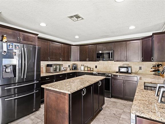 Welcome home to the desirable Waterford Trails community! This stunning 6-bedroom, 4-bath home with a bonus room sits on a conservation lot just steps from the community pool and amenities, perfect for families or entertaining. The heart of the home is the custom kitchen, featuring a mobile island, stylish finishes, and appliances (2018). This home also includes roof, HVAC and downstairs tile replaced in 2018. Inside, you’ll find spacious bedrooms with ample closet space—including the primary suite upstairs plus multiple walk-ins throughout the home. Enjoy even more flexibility with the bonus room, ideal for a multigenerational families, playroom, or media space. The spacious fenced backyard boasts a custom pergola, creating the perfect setting for outdoor gatherings or quiet evenings. Waterford Lakes Trails offers resort-style amenities including a pool, clubhouse, fitness areas, sports courts, and walking trails—all close to top-rated schools, shopping, dining, and major highways. This move-in-ready home has it all, space, style, and updates making it a true must-see today!