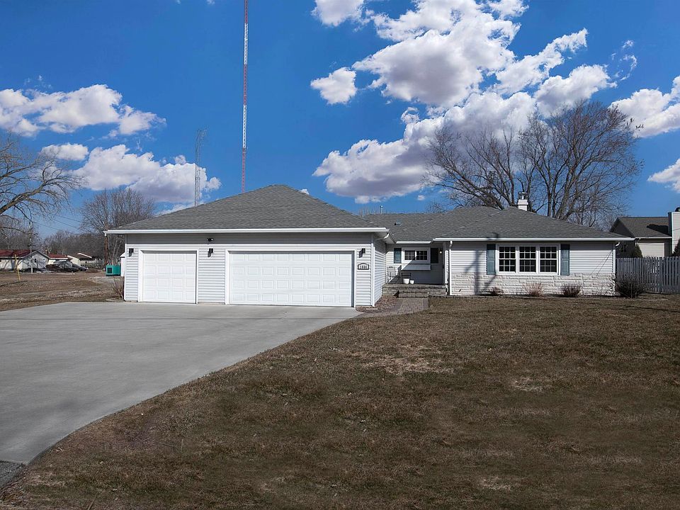This Ranch home that sits on .52 acre with a large heated three car garage with an additional single garage door that opens up to backyard. Also featuring three bedroom, one full bath, one half bath, solid hardwood floors, fireplace, nicely updated kitchen with so much more to offer. Schedule your showing today for this home will not last long. All offers to be submitted by 10:00a.m. Monday 4th March 2024