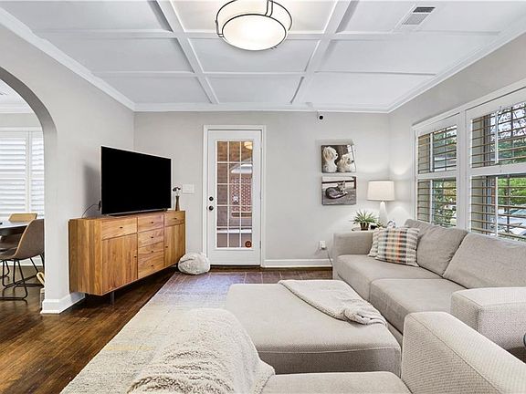 This beautifully updated brick Craftsman-style bungalow perfectly captures the charm and convenience of East Atlanta Village living. With its inviting curb appeal, flat front yard, and extra-wide driveway, there’s plenty of room for guests and everyday parking alike. Step inside to a bright, open family room featuring a coffered ceiling and hardwood floors, plus a bonus flex space lined with windows—ideal for an office, reading nook, or creative corner. The open-concept kitchen has been refreshed with new countertops, backsplash, and flooring, creating a crisp, modern feel that pairs beautifully with the white cabinetry, stainless steel appliances, and pantry. Built-in cabinets in the dining room add extra storage and style, making the space as functional as it is inviting. From there, step out to the incredible fully fenced backyard—complete with a deck, patio, large shed, and expansive greenspace, offering plenty of room for outdoor entertaining or play. Two main-level bedrooms share a beautifully renovated full bath, while upstairs, the owner’s suite feels like a private retreat with custom details, a walk-in closet, and a freshly updated bath featuring new shower tile, flooring, and vanity, plus dual sinks and an oversized shower. A dedicated office with built-ins completes the upper level. With major updates throughout—this home blends timeless charm with turnkey peace of mind. Just minutes from the heart of East Atlanta Village, restaurants, and shops, this one delivers the perfect mix of character, comfort, and location.