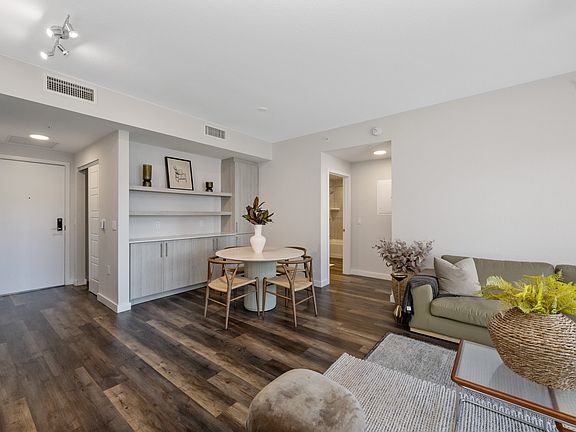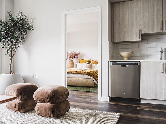 - Exterior features: Ample Parking, Breakfast Bar*, Club Quality, 24-HR Fitness Studio on 6th Floor, Complimentary Wi-Fi in Social Spaces, Controlled Guest Access Technology, Farmhouse-style Sink, Generous Closet Space, Luxury Features like two Full Baths*, Modern Kitchen with Stainless Appliances, Outdoor Entertainment Area with Grills, Package Receiving, Pantries with Ample Storage*, Pet Friendly Community with Pup Park, Poolside Cabanas, Reserved Covered Parking, Serene Bathrooms with Glass Showers*, Soaring 9 foot Ceilings, Solar Shades in Every Room, Sustainable Wood-style Flooring Throughout, TV Lounge, Undermount Cabinet Lighting*, Updated LED Light Fixtures Throughout