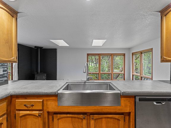 Welcome to your private paradise! This beautiful Pacific NW style home nestled in a peaceful and picturesque setting overlooks seasonal Owl Creek & is the perfect place for you to call home. Situated on 3.43 acres w/ an open meadow area, established fruit trees, & plenty of room for a shop or RV- this property has it all! Inside, the home has been lovingly updated including laminate wood flooring, concrete counter-tops with a farm sink & reverse osmosis system. Cozy up in the family room around the woodstove or entertain guests in either the dining area or living room. There are 2 bathrooms & 3 bedrooms - one downstairs on main floor. Skylights are throughout giving you plenty of natural light. Outside, Enjoy your Trex deck just outside your French doors or lounge under covered breezeway leading to detached insulated 2 car garage with workbench and tool shed included! Don't miss out on this amazing opportunity - schedule your showing! Well pumped 6.47gpm in 2020 & new septic 2020.