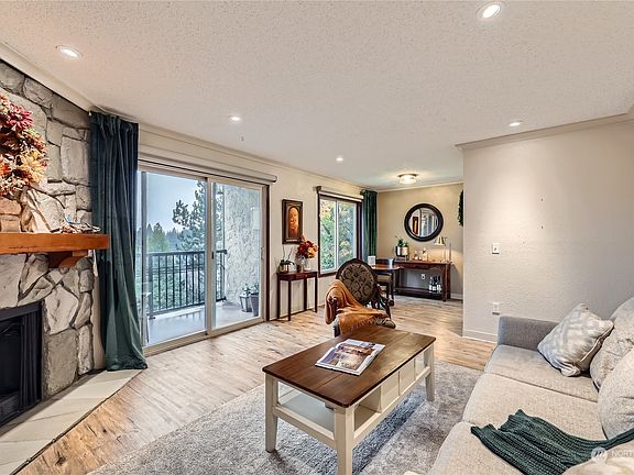 Beautifully updated, 1-step entry condo offering lovely territorial western views. Enjoy a stunning '24 kitchen remodel feat. quartzite counters & backsplash, brushed gold hardware, SS appliances, & sleek LVP floors. '23 bathroom upgrade showcases frameless glass walk-in shower. Spacious living & dinning room. boasts crown molding, recessed lighting, cozy wood-burning fireplace, & remote blinds. Unwind on your private balcony with sunset views. Primary bedroom includes walk-in closet. 2 storage spaces & all appliances, including W/D, stay. 1 designated parking spot+guest parking. Community playground & clubhouse. Minutes to I-405, Totem Lake Village, hospitals, wineries & walking distance to shopping & dining. Pet-friendly, no rental cap!