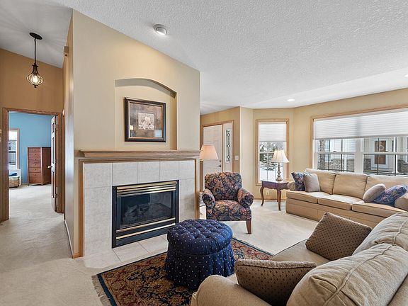 Luxury one level living. Main level features new eat in kitchen with granite counter tops, separate dining area, living room with gas fireplace, powder room, den with built in bookcases, owner's suite with private bath double vanity and walk in shower, and sunny 4 season porch. Walkout lower level offers a family room with a gas fireplace and large bedroom with a full bath. Newer appliances in the last 2 1/2 years include: refrigerator, range, furnace and air conditioner. Roof new in Fall of 2022
