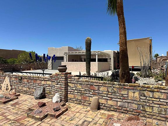 Stunning and spacious 1 bedroom, 1 bath completely remodeled casita (2022 yr) full of high-end features and modern amenities. Inside, enjoy wood-look tile flooring, quartz countertops, a breakfast bar, central AC, and a water softener with RO system. Sleek designer kitchen includes a large island, plenty of storage space, dishwasher and stylish finishes. Large living room with built-in electric fireplace. Outdoors, relax under the pergola while taking in the warm desert scenery, entertain by the propane firepit, or cook in the newly built outdoor kitchen (2023 yr). Covered patio area adds convenience, while the RV shade structure (2021 yr) and full hookups make this property perfect for travelers or guests. Oversized single-car garage with mini split offers extra space and comfort. Washer and dryer included in this exceptionally maintained property!