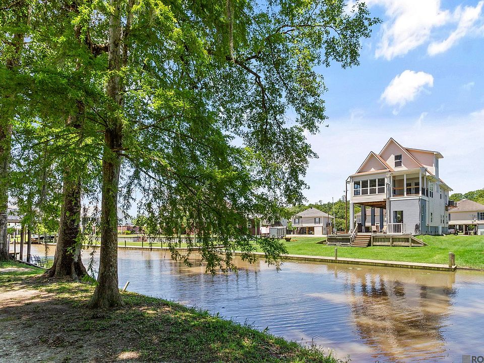 Waterfront 4 bedroom 3.5 bath home. This home is located on a nice and quiet waterway that connects to the Amite River. One the first floor you have a nice open floor plan. As you enter you will find the kitchen with stained cabinets and an island with a breakfast bar straight ahead with lots of counter space. To the left of the kitchen you will find the living room, breakfast/dining area and just beyond that you will enter the lovely sunroom overlooking the water. To the right of the kitchen you will find a bedroom currently being used as an office space. The laundry area and 1/2 bath are located on the hall off the kitchen and leading to the primary bedroom at the end of the hall. Upstairs features 2 bedrooms and 2 full bathrooms. On the ground level you will have plenty of space for outdoor bbqs by the outdoor kitchen area great for entertaining right off the water. Ground level also features a 1/2 bath and a workshop/store room. Home features an exterior elevator, central vac system and foam insulation. This waterfront property has 60 foot decking over the water for some fishing or tying up your boat. Seller willing to sell the home mostly furnished with a good offer! Call to see this great home before it's gone!