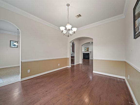 Stunning single-family home located in the gated community of Terraces on Memorial. This home offers soaring ceilings, elegant crown molding, and hardwood floors throughout the first level. The backyard is perfect for entertaining with an extended patio and pergola. The well-designed layout includes spacious living areas on the first floor, three bedrooms on the second floor, and a versatile game room or fourth bedroom with a full bath on the third floor. Enjoy an unbeatable location near Bush Elementary, JP2, and the Terry Hershey Park & Bike Trail. This private gated enclave offers lakeside views, peaceful walking paths, and resort-style amenities pool, courts, playground, and clubhouse. This is a must-see. Room sizes are estimates. Please verify independently. Refrigerator, Washer and dryer are included!
