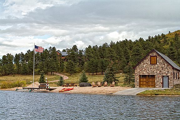 Combining mountain and full-use lakefront living is a rare commodity in Colorado but was achieved with the completion of this beautiful custom home. Sited on the highest point of the property and surrounded by acres of meadows affords abundant breathtaking views of Pikes Peak and Lake Imagination ubiquitously. Keeping only the finest quality materials in mind, the exterior is finished with no-maintenance James Hardie cedar siding with real moss rock accents. The current owner hand selected many of the unique materials during his travels to find just the right pieces to complete his perfect vision for the home from the 100 year old refinished Pennsylvania red oak floors and antique wood beam trusses imported from the western Canada to the custom LaPuerta Doors from Santa Fe, New Mexico. Just a few of the mentionable high-quality hidden interior features include pre-wire for surround sound, an 8-zone radiant in-floor heating system, mahogany hardwood decking & Pella metal clad windows. **$5000 BONUS TO SELLING AGENT AT CLOSING** Neighborhood Description Enjoy boating, water skiing, wake boarding, fishing, swimming and ice skating right outside your back door!