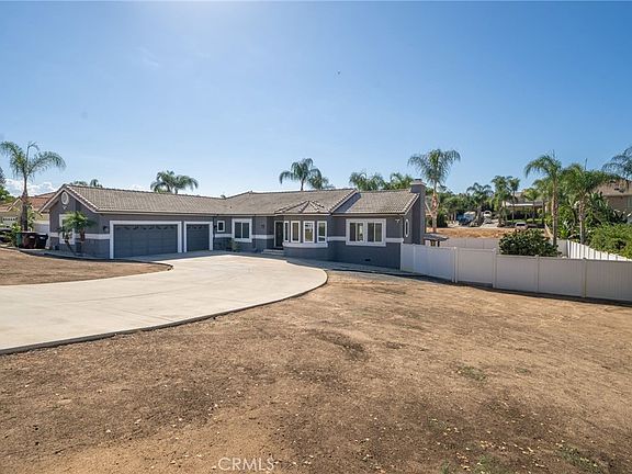 This home is a must see!!! Surrounded by stunning views, located in the highly desired Canyon Ridge Community. No HOA, no Mello Roos and low property tax. The gorgeous, recently remodeled 3 bedroom, 2 bath home features: modern fixtures, recessed lighting, new molding, archways, designer paint and vinyl plank flooring throughout. Lots of windows with natural lighting, to showcase all this home has to offer, such as the vaulted living room ceiling and stone fireplace for those chilly nights and a beautiful ambiance. An open floor plan perfect for entertaining, the kitchen has granite counters, an island, large pantry and stainless appliances. The home features a water softening system, along with a reverse osmosis water filter for the kitchen. The exquisite master bath has a walk-in shower with two shower heads, beautiful glass doors, dual sink vanity with granite counters and a large master bedroom with a walk-in closet and sliding door to the backyard. This home sits on almost a half acre with a long driveway, RV parking and don’t forget it has a 3 Car Garage and a detached shed with a roll up door. The possibilities are endless for this beautiful piece of property that is surrounded by mature palm trees. There is an unfinished basement area that can be built out to be used as a storage room or what you desire. This home truly has it ALL!! Don’t miss out on an opportunity to own a prime piece of Riverside’s real estate surrounded by city lights and mountain views. Conveniently located near freeways, shops, restaurants and in an award winning school district!