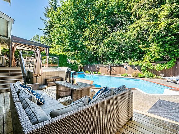 “The Glens” – quiet cul de sac in a forested urban sanctuary with the perfect blend of natural tranquility and city convenience. This split-level home with central air conditioning has 5 plus bedrooms, 3 full bathrooms, large living room, dining room, family room and games room. The backyard oasis features an upper dining deck, lower seating patio overlooking the immaculate inground pool and hot tub. With forest green belt beyond the fully fenced yard, privacy is not a concern. Within a few minutes’ walk is Sunnyside Acres forest, South Surrey Recreation & Arts Centre and Athletic Park featuring sports fields, playgrounds, water parks, tennis courts, skateboard park, bike park and more. A short walk to elementary schools and Semiahmoo Secondary,