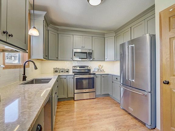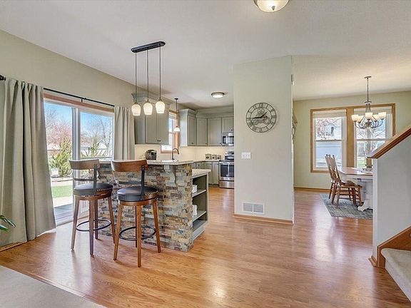Beautiful well-maintained 1-owner home with tons of updates! Wonderful location in desirable ISD 196, within walking distance of Eastview HS & Cedar Isle Park. Convenient to Fischer Marketplace shopping & dining, AV Aquatic Center & MN Zoo. New driveway in 2022, roof & water softener in 2021, furnace in 2020. Kitchen has stainless-steel appliances, tile backsplash & stone accented island with seating. Living room with gas fireplace. Spacious dining. Main floor office with custom built-ins. Main level half bath & laundry with access to the garage - new garage door with belt driven opener. Upper level primary suite with walk-in closet & private bath. 3 more upper level bedrooms with sizeable closets & a full bath. Fabulous lower level entertaining space remodeled in 2020 with shiplap accents, electric fireplace, wine fridge & kegerator! 5th bedroom & three-quarter bath on LL plus a fantastic storage room with workshop space. Backyard oasis boasts an expansive patio & great fire pit!