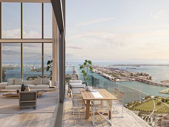Casa Bella Residences offers a range of layouts, including 1, 2, 3, and 4-bedroom residences with 10' ceilings. Penthouses boast 11-12' ceilings and stunning rooftop terraces. All units feature biometric access-controlled elevators, floor-to-ceiling impact-resistant windows, Italian kitchens and bathrooms designed by Piero Lissoni, and premium appliances.