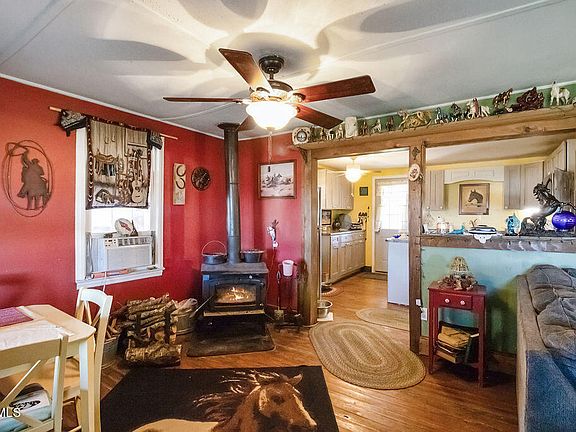 Charming farmhouse on 6 acres, with a picturesque pond and stunning mountain views. Home is currently a 1 bedroom, a wall was removed between the living room and bedroom but could be put back to give someone a second bedroom. This tranquil property offers a cozy retreat from the hustle and bustle, with plenty of space to roam. Property is perfect for horses. An extra block building sits at the road that would be perfect to fix up and use as an apartment for extra income. This is perfect for those seeking a peaceful countryside lifestyle with potential for creative expansion.