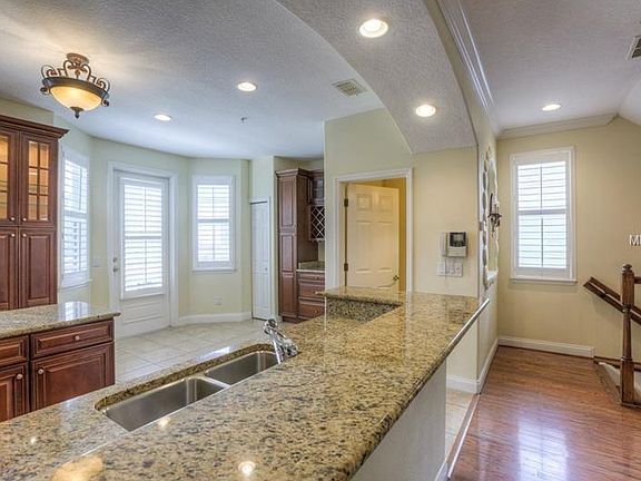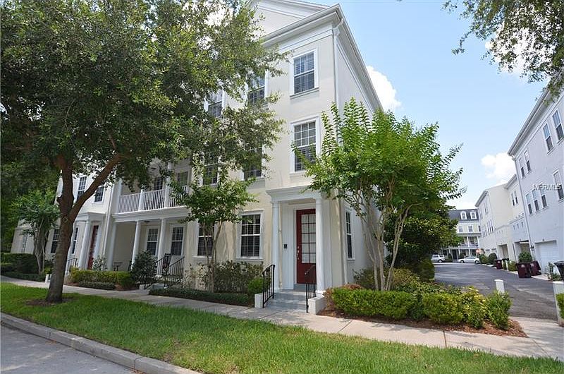 BALDWIN PARK town home, with many UPGRADES! 3br 2ba + 2 half baths, 2 full baths on 3rd floor with split master bedrooms. Half bath on second level off kitchen and half bath in bedroom 3. CROWN MOLDING, designer light fixtures. HARDWOOD FLOORS, solid wood stair treads and banister, with wrought iron balusters. CHEF'S KITCHEN boasts GRANITE COUNTERS, island counter, STAINLESS STEEL appliances, solid wood cabinets and dry bar/butler pantry. Balcony off the eat in space in kitchen. Master bath boasts DOUBLE SINKS, JETTED GARDEN TUB, separate shower. Bath 2 is tile shower only with sliding glass doors. Attached 2 car garage, rear entry. Community pool and fitness center. This is a change in your lifestyle, not just where you live. Don't miss this chance to live in a very WELL MAINTAINED home in a phenomenal neighborhood. Walk to all shops, dining and commerce in Baldwin Park. Only 2 blocks to town center. Just 10 minutes to Downtown Orlando. Easy access to FL-408 and I-4. Drive by first, then call for appointment.