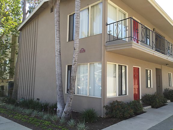 OPEN HOUSE SHOWING TODAY August 1 AT 3:00pm (no appointment necessary). Can also show it tomorrow (August 2) between 1-6 by appointment - please call/text for appointment. Mid-century modern 8-unit building with bright red doors, and a great Eastside Long Beach location close to CSULB, Belmont Heights, shore, circle area, shopping and freeways. All hard flooring, large bedroom, lots of closets and storage, onsite laundry and your own PRIVATE oversize single garage! Spacious, bright 1st floor end-unit, 1 bedroom/1 bath with dining area, contrasting paint and trim, blinds, ceiling fans, gas stove, refrigerator, vintage-y kitchen, big closets. Larger bedroom will easily accommodate king-size bed. Cats, fish, reptiles all ok (no dogs or birds). Awesome neighborhood near the traffic circle - walk across the street to favorite retro shopping (UrbanAmericana) and trendy Yelp eateries (Working Class Kitchen, Long Beach Fish Grill and Pho Hong Phat). FREE to apply with your own credit report. Privately owned and managed. 1 year lease. We will happily consider parents as cosigners. Square footage is approximate. Water and gardener included. VACANT AND AVAILABLE FOR IMMEDIATE MOVE-IN. Call Lisa (562) 230-8300 1-year lease. FREE to apply with your own credit report. We will consider parents as co-signers. Privately owned and managed.