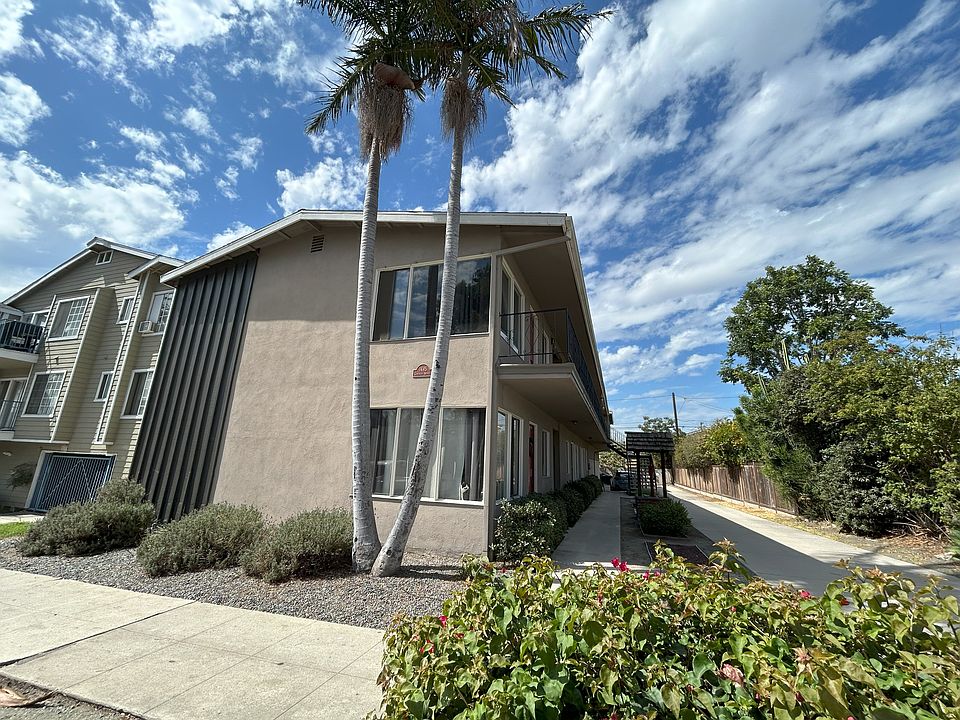 Spacious 1 br/ 1 ba unit in desirable Eastside neighborhood, ride or scooter to CSULB, shopping, close to freeways, steps from the bike boulevard, great eateries. 2nd floor end-unit in a cat-friendly Mid Century building with laundry and mailbox room. Urban view from the living room of palm trees and rooftops. Very large bedroom with wall-to-wall closets and storage, window A/C, hall storage.