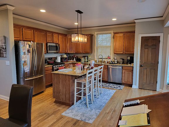 Great Location of St Charles - Close to Everything! 2-Story Features 4-Bedrooms and 3.5-Bathrooms. All Bedrooms Located on the 2nd Level with a Bonus Room Attached to One of the Bedrooms. Great for a Play Room. Beautiful Kitchen with Separate Eating Area and Fireplace. Island. SS Appliances. Sliding Door in Kitchen Opens to Fenced, Back Yard. Large Patio. H/W Floors on Main Level. Full, Finished Basement with Laundry Room and Bathroom. Newer Furnace + A/C. Pool Table is Staying with Home, Seller Will Not Be Removing. Not Included with Sale: 2-Heaters in Garage, Refrigerator, W/D. Sold "As-Is."