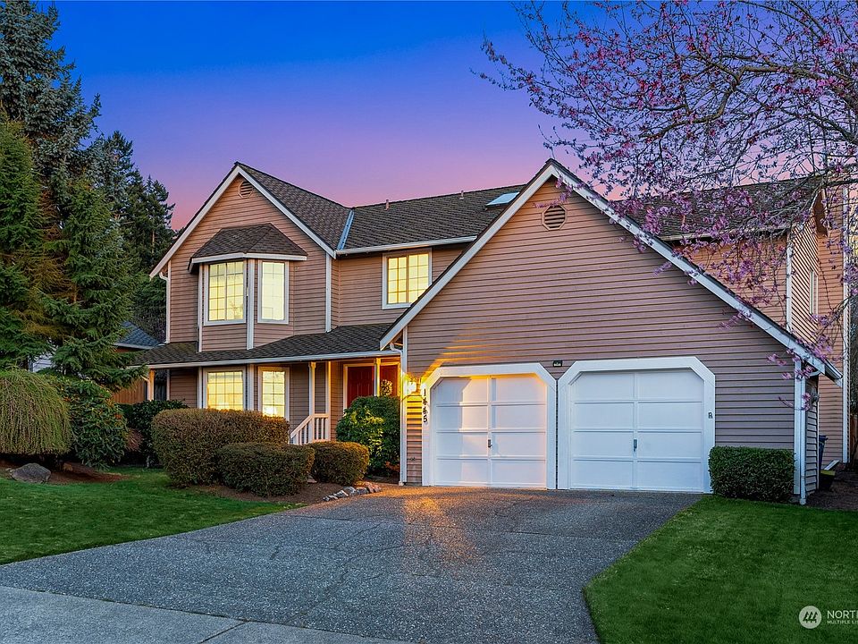 Quintessential Mukilteo home in coveted Goat Trail neighborhood. 4BR 3 BA w/ stunning curb appeal and fenced backyard adorned w/ cherry blossoms, making it a great place to relax and unwind, garden, or play. Step inside and notice thoughtfully designed layout with natural flow that's perfect for entertaining. The kitchen has great natural light and view to backyard, and updated with granite countertops. A large deck off the eating area and family room invite you out to fresh air & humming birds. Upstairs, you'll find a large bonus room great for play or workout space or both, plus extra large storage areas. There are also 4 bedrooms up, including primary w/ view of the private yard. Two car garage. Easy walk to parks, schools, and trails.