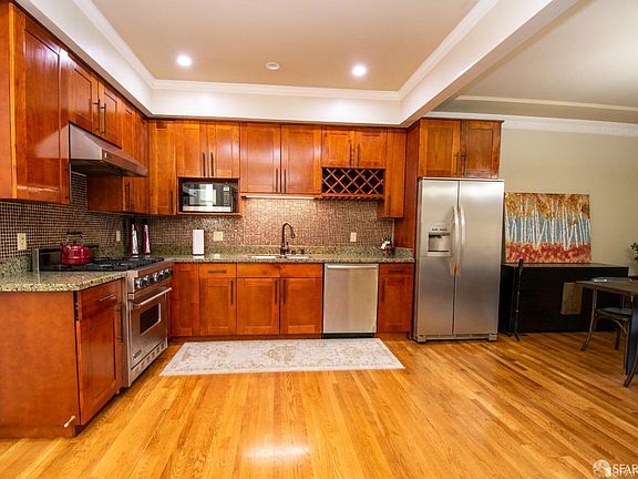 Sunny private deckElegant hardwood floorsSpacious san francisco flatFormal dining roomStreet parking