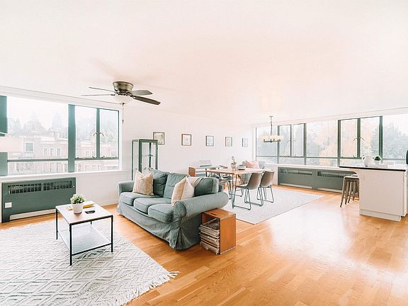 A rare opportunity to own in this Vancouver landmark, Hycroft Towers. Intriguing mid century modern inspired concrete condo in the heart of South Granville. Large floor plan over 1,274 sq ft ideal for entertaining. You are welcomed by an abundance of natural light & wall to wall windows. Spacious open living and dining area, updated kitchen and wood flooring throughout. Two generous bedrooms, renovated bathrooms & attention to classic details. Ample storage including primary closet outfitted with shelving & organizers. Amazing common rooftop deck with 360 degree views of water, mountains & city top off this coveted destination. Conveniently located to transit, the new subway line, shopping & neighbourhood dining. No Rentals Allowed.