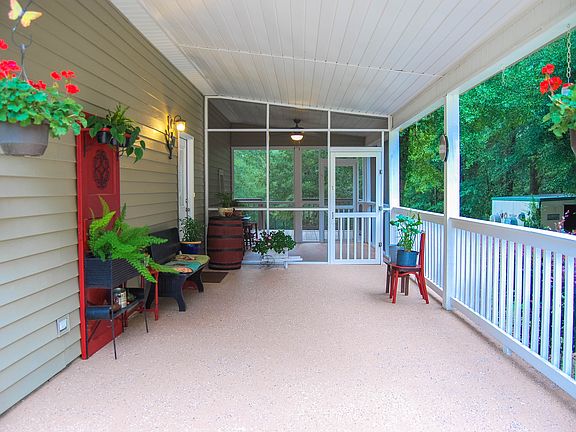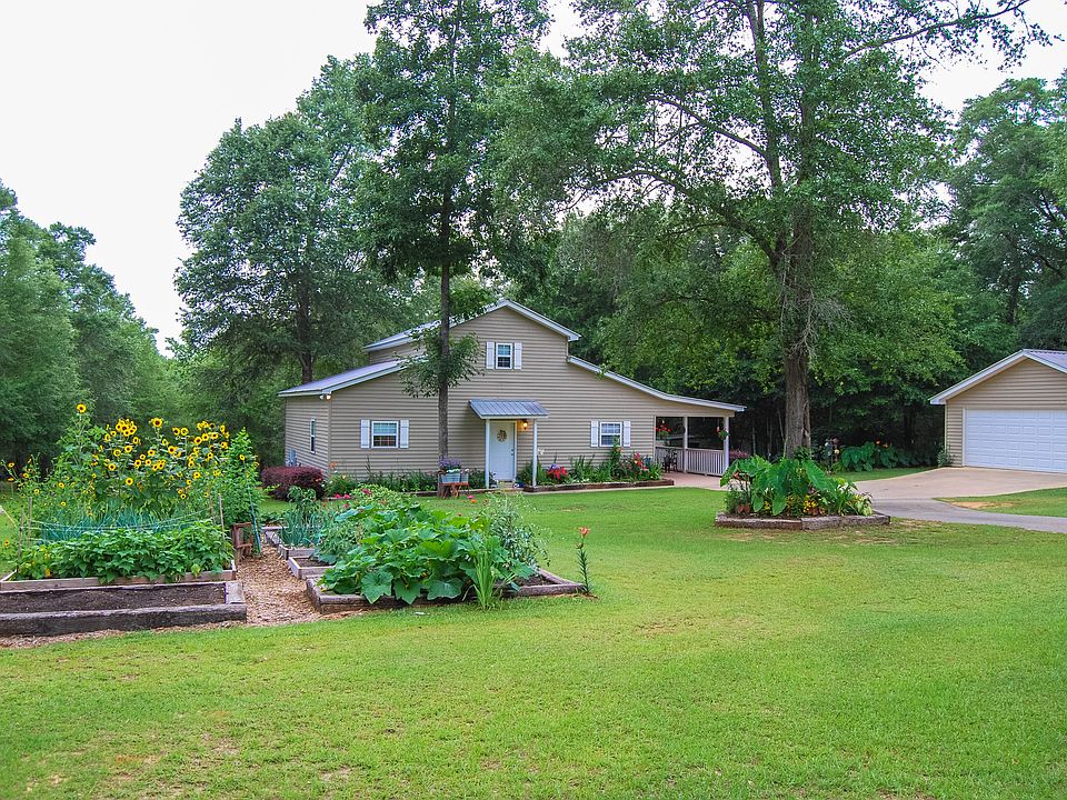 21 acres + pond, just outside city limits! Large kitchen with porcelain tile, granite counters & backsplash, wood cabinets and island with bench seating. Open dining area & living room with large windows. Master down with walk-in closet. Enormous utility room with built-in cabinets. Attached carport, screened porch & large wooden deck. Detached garage with cable, electricity, window heat pump & utility sink. Dock & light pole by pond. Underground power, 2 Heat Pumps, metal roof & Home Warranty!