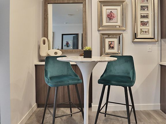 - Exterior features: BBQ/Picnic Area, Business Center, Designer Finishes, EV Charging Stations, Efficient Appliances, Expansive Bedrooms, Free Weights, Gourmet Kitchen with Stainless Steel Appliances, Half Bathrooms in Select Homes, Handsome Woodgrain Flooring, High Ceilings, High-speed Internet Ready, Individual Workout Pods, Lush Carpeting, Luxury Enclosed Shower Spaces, Media Room, On-Site Maintenance, On-Site Management, Package Receiving, Pet Washing Station, Private Balconies, Soaking Tubs, Spa-inspired Bathrooms with LED Backlit Mirror, Spacious Closets, Sundeck, View Type: View, Yoga/Pilates/HIIT Studio