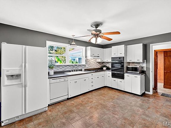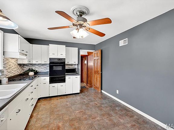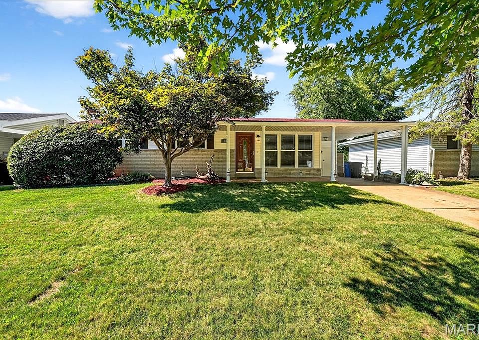 This home has a lot to offer...set on a level lot in a quiet Florissant neighborhood, this well-maintained ranch features 3 bedrooms, 2.5 bathrooms, and plenty of flexible living space. Inside, you'll find a bright and inviting living room with a large picture window and neutral finishes. The kitchen features classic white cabinetry, tile backsplash, a gas cooktop, and room for a breakfast nook — perfect for casual meals or morning coffee! Adjacent is the expansive family room addition with a wood-burning fireplace, wood-paneled walls, and updated luxury vinyl plank flooring — an ideal space for entertaining or relaxing. Three bedrooms are located on the main floor, including a spacious primary suite with its own private ensuite half bath, plus an additional full bath. The finished lower level extends your living space with a large rec room, bonus room, and another full bathroom — great for guests, hobbies, or a home office setup. Updates include a 6-year-old roof, 5-year-old HVAC system! The home also features a carport and storage sheds for added convenience. Move-in ready with all the essentials — welcome home!