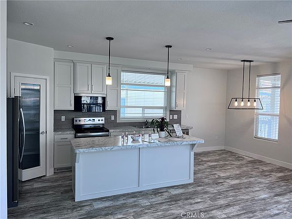 Beautiful Brand NEW ALL Electric Manufactured home 3 bedrooms 2 bath. Open kitchen with a big kitchen island, Coner big glass pantry & big living room area. This home comes with stainless steel appliances, side by side refrigerator dishwasher, stove, microwave, central a/c and heating. Window treatment in all windows. high windows, high ceilings. Nice big front porch with brick skirting and a nice planter, two car, carport with awnings. The home is located in the best all age community in Hemet with a large clubhouse, swimming pool, sport court, laundry facility, playground, gym, and a gated community to be locked at night.