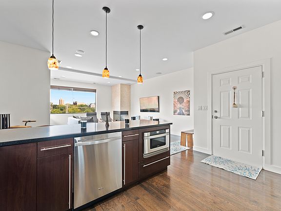 Set in the heart of West Town, this contemporary 3 bed | 2 bath condo offers the perfect blend of comfort and urban city living. Located on the 3rd floor of an all-brick building, the home features large picture windows flooding the living space with natural light, a dynamic open floorplan, hardwood floors and a fresh coat of paint throughout, a gas fireplace, and ample storage. The chefs kitchen offers modern cabinetry, upgraded SS appliances, natural stone counters, and a huge peninsula perfect for entertaining! The primary suite features a walk-in closet, en-suite bath with double vanity, jetted soaker tub, and separate walk-in shower. Two private outdoor areas include an enormous 225 sq. foot back patio off the primary with sweeping views of the Chicago skyline and a 2nd off the living room. Garage parking adds convenience, while the vibrant neighborhood puts you steps from Fulton Market/West Loop, acclaimed restaurants, coffee shops, galleries, and nightlife, with easy access to downtown, the interstate, and convenient public transit options.