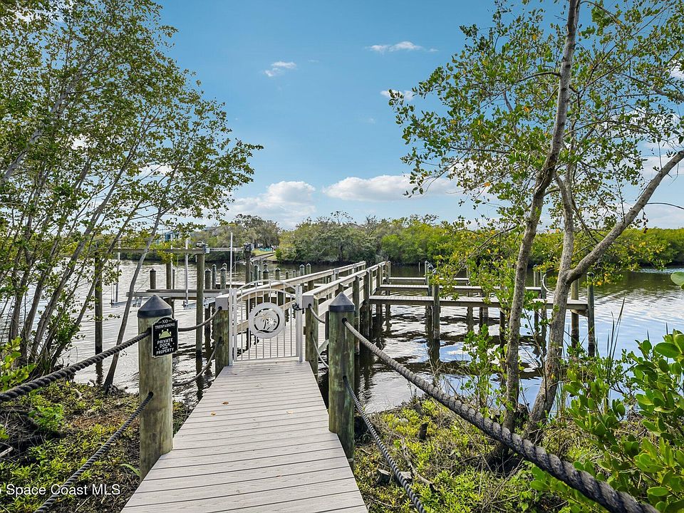 This 4-bed, 3-bath, 2-car garage home offers 2,400 sq ft of luxury living on the Eau Gallie River with serene views of lush conservation and a shared dock. Secure a boat slip and enjoy life in this gated new construction community featuring resort-style amenities, green space, meticulous landscaping, and low HOA dues. Built w/ modern finishes: 10' ceilings, 8' six-panel doors, impact windows, plank tile floors, premium appliances, soft-close cabinetry, and spa-inspired bathrooms with floor-to-ceiling tile. Curb appeal shines with a pavered driveway and fresh landscaping. The backyard overlooks the river and conservation land—with space for a pool or extended patio. Minutes to the Eau Gallie Arts District, Atlantic beaches, Melbourne Airport, and I-95. A rare blend of quality, location, and lifestyle—don't miss it!
