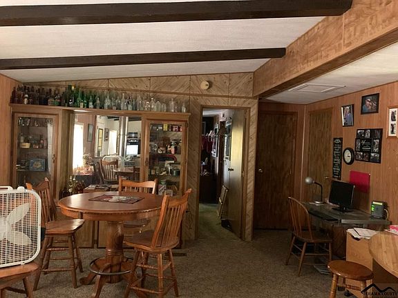 Great country setting for this spacious 3 bedroom, 2 bath with a large covered deck. 10.36 rolling treed acres with end of the road privacy. Garage with workshop area attached with a breezeway, several outbuildings and property is perimeter fenced for your animals.