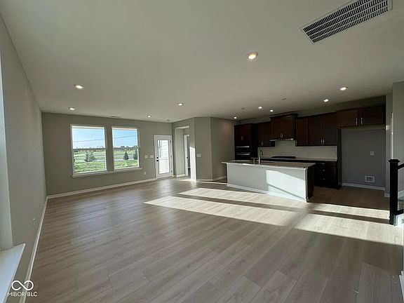located in one of Carmel's most desirable communities. The open-concept layout showcases **luxury vinyl plank flooring throughout the first floor