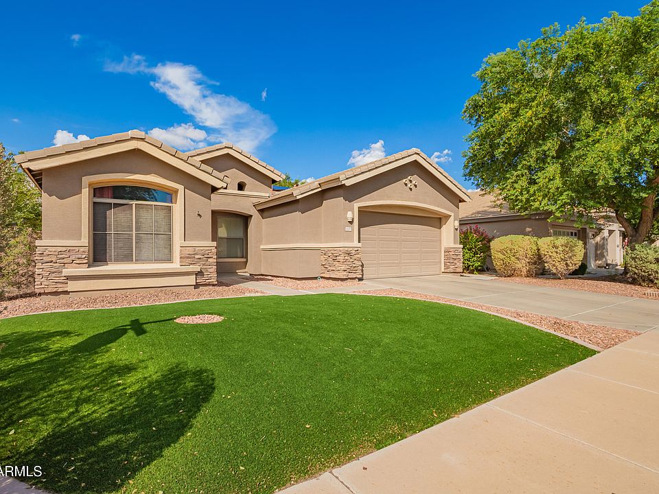 This home features a sparkling pool, a fireplace, a 3 car garage, a double gate, and it is sitting on an oversized lot just waiting for your buyers. Located in highly sought after Royal Ranch, and conveniently located near Costco, Target, and groceries store The front and back yard have been tastefully landscaped with low maintenance artificial turf in the front yard and real grass in the backyard. Inside, enjoy bright, open spaces with soaring vaulted ceilings, tile floors, arched details, and a cozy fireplace. The chef's kitchen features abundant cabinetry, stainless appliances, and a large island with breakfast bar. The primary bedroom offers a walk-in closet and spa-style bath with dual sinks. A private den is ideal to convert to a 4th bedroom. There is also screened in AZ room.