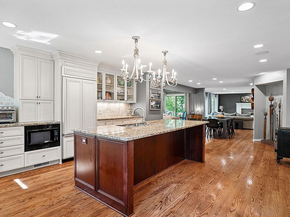 This meticulously maintained Wayzata home is available for the first time in 35 years! The serene calm of this property is accentuated by the thoughtful finishes throughout. Main floor features a home office and open kitchen concept w/ high end appliances & oversized center island, ideal for entertaining. Dining area can easily accommodate a large gathering, with scenic backyard views and multiple fireplace options. The sunroom was added in 2019 and will quickly become your favorite place to relax after a long day! Spacious mudroom, laundry and powder room round out the first floor. Upper level features four generously sized bedrooms. Primary ensuite includes walk-in closet with expertly designed Elfa system to maximize efficiency, and ¾ bathroom. Open loft provides flex space for kids toys, study, relaxation or to harness your yoga skills. Walkout lower level includes large entertainment area, 5th bedroom (currently used as an art studio), bonus office/exercise room, recently built ¾ bathroom and additional storage space. Home has many other thoughtful updates including gutter helmets & heat tape, spectacular front yard fountain & backyard firepit. Located in a quiet neighborhood with convenient access to highways 494 & 394, an extensive trail system & Meadow Neighborhood Park.