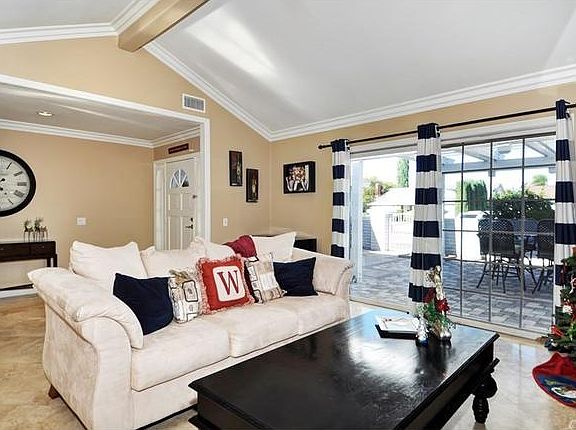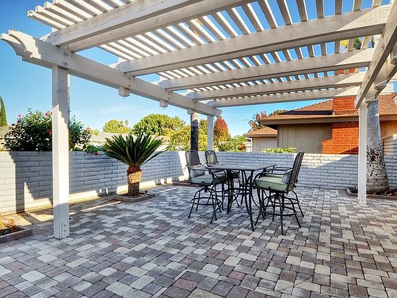Great home in Tustin close to Freeways, Schools, Parks between the Marketplace and the District. Fabulous Single level 4-bedroom home with stone flooring, California open kitchen/family room with French doors to back deck overlooking fenced in Eco friendly yard. Granite breakfast bar, updated appliances and cozy living room with fireplace opens up to front enclosed courtyard with pergola and pavers with space for entertaining and/or playing. Large Master bedroom and Master bathroom with dual sinks and beautiful stone shower. Many details including crown molding, newer stone flooring, updated bathrooms.