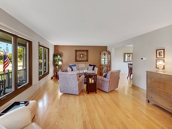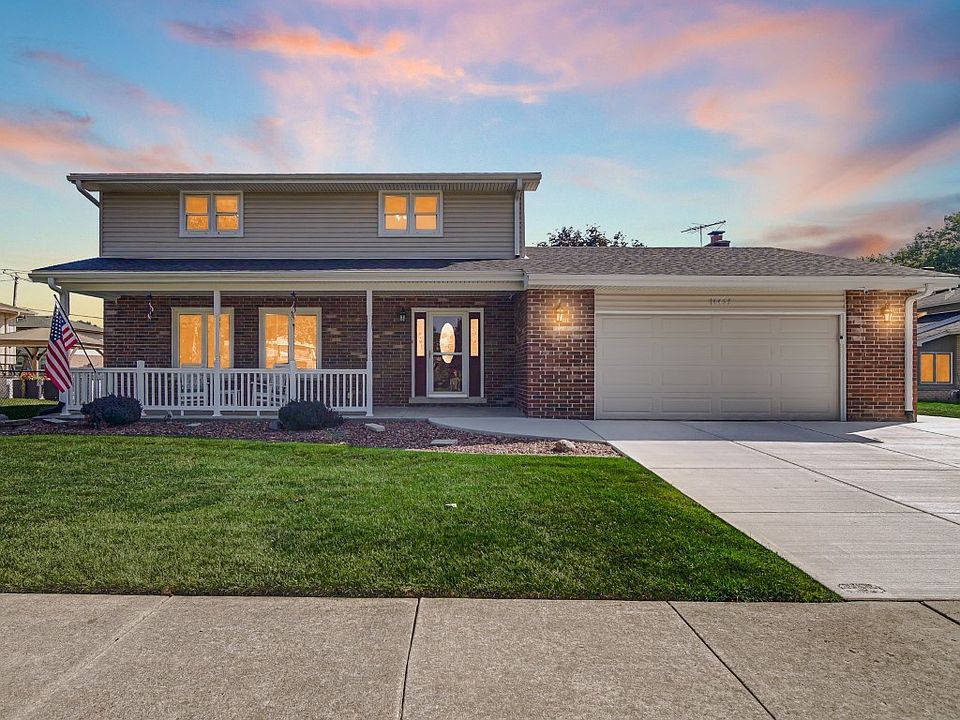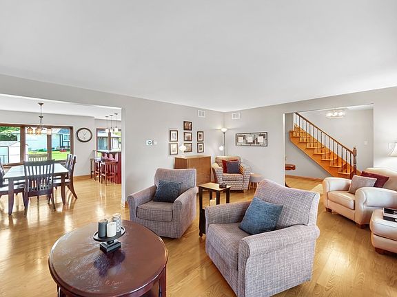 Beautifully maintained traditional two-story home featuring 3 bedrooms, 2 full baths, and 2 half baths. The main level offers a spacious living room, dining room open to the remodeled kitchen (2016) with breakfast bar, welcoming family room with gas fireplace, convenient half bath, and laundry room. Hardwood floors throughout the main level (installed 2015) add warmth and character. The second level includes a primary suite with a remodeled bath (2013) with heated floors, a walk-in shower with Corian base, two additional bedrooms and a full bathroom. The finished basement includes a large recreation room (2012), remodeled half bath, and abundant storage. Major updates include a new roof (2025), concrete driveway (2024), HVAC (2022), ejector pump (2022), hot water tank (2015), sump pump (2015), new siding, gutters, downspouts, and fascia (2016), and triple-pane windows (2013). The 2.5-car attached garage sits on a new concrete driveway and features a new garage door (2023). Enjoy the large covered front porch and beautifully cared-for backyard with new patio, perfect for relaxing or entertaining. This home combines space, style, and thoughtful updates and is ready for its new owner!