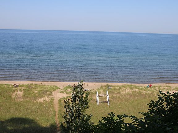 Classic Lake Michigan Cottage with 56' lake frontage by 329' deep overlooking sandy beach and lake. Quaint 5 bedroom cottage with deck and patio. One bath on main floor with full basement for storage of beach toys.