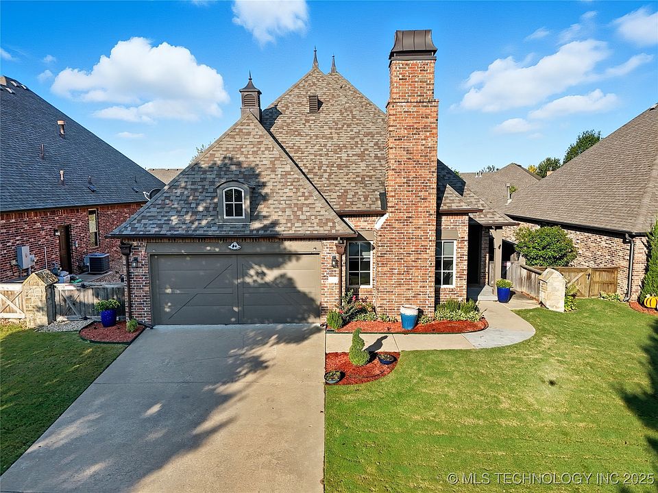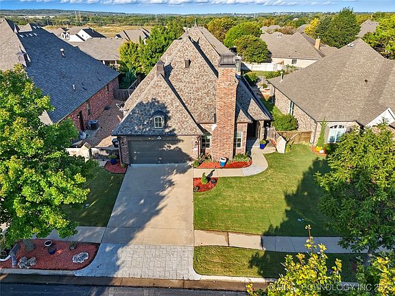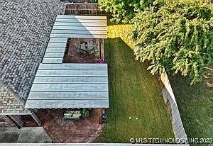 Upgraded brushed leather style Granite & backsplash, coffee bar addition, sink, disposal, under counter LED Lighting. Upgraded baths & laundry room granite. Primary suite is Vaulted w/ two person spa/bath, sep. shower, dual sinks, & large walk in closet. Great room vaulted w many windows opens to spacious dining, large island kitchen, walk in pantry. Split BR plan.3rd BR used as Ofc has fireplace and cd be used as extra living. Triple size patio/outdoor entertaining area has 2 pergolas, lighting, fans, outdoor television hookup, sitting and dining areas. Made for entertaining. Inground Storm Shelter in Garage & Much More! No showings or offers until 10/11/2025