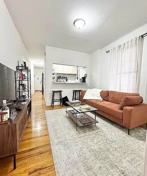 Apartment features, recently renovated open kitchen/breakfast-bar w full appliances, 1 Queen & full size bedrooms spacious living room, entry foyer , dining area , that facing street, sparkling hardwood floors, tall ceilings, ample closet/storage space, full large beautiful marble bathroom.