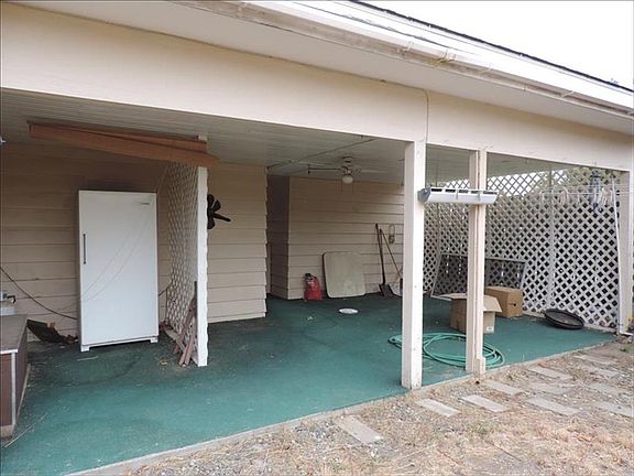 Spacious one level home with 1456 sq. feet. Large lot with a small outbuilding, covered parking, Covered patio. Newer GFA/CA, inside freshly painted. Hard wood floors, 3 bdrms, 1 bath. Area in the laundry room with a sink, might be fairly easy to add another bathroom. Fireplace in a large living room, vinyl windows.
