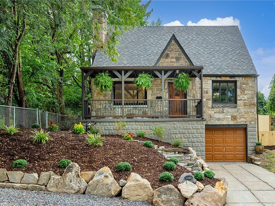 Storybook Stone Tudor just 2.5 miles from Downtown Pittsburgh. 3 bedrooms, 2 baths, brand new dimensional shingle roof, brand new central air and newly-constructed front porch. The kitchen was gutted and completely redone with leathered granite countertops and stainless appliances. Both bathrooms were gutted and completely redone in 2014. Beautiful hardwood floors throughout. Large fenced backyard, lots of trees, lots of green, lots of quiet, and all just minutes from Downtown.