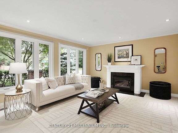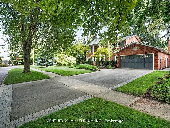 BRAND NEW ROOF JUST INSTALLED!! AND NEW EAVESTROUGH WITH LEAF GUARD. Welcome to this elegant Georgian-style home, situated in the highly desirable southeast region of Oakville. Sitting on a large lot size this home is perfect for families seeking top-rated schools, with Oakville Trafalgar High School just across the street, both Maple Grove Public School and E.J. James (French Immersion)within a 5-minute walk, and a short drive to University of Toronto Mississauga(UTM). Enter through the French doors to the living room with gas fireplace and adjoining dining room. The large eat-in kitchen with custom built-in cabinetry and table has Stainless Steel appliances with a gas stove. Main floor laundry with access to the backyard. The generous-sized family room with built-in shelving and a gas fireplace has a walk-out to the beautiful backyard. The second floor boasts 4spacious bedrooms and a large bathroom with double sinks. The primary bedroom features a walk-in closet and an updated spa-like 5-piece ensuite, complete with a soaker tub, two separate sinks, and a shower. The finished basement is a blank canvas for you to create a large family entertainment area and includes a craft room that can be converted into an additional bedroom. Step outside to a private landscaped backyard with a heated inground pool, perfect for summer relaxation and entertainment. Close proximity to highly rated schools, and close to Lake Ontario, scenic trails, GO train, highways and shopping centres. Experience luxurious living in this classic Georgian-style home, designed to cater to your every need.