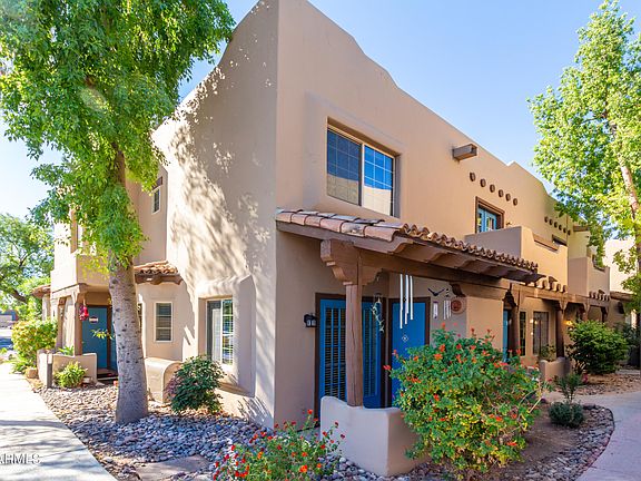 This quaint & quiet community is like a little oasis. Beautiful Corner Lot!! The condo has a newer kitchen remodel including cabinets, stainless appliances and more! Updated windows and doors! French Doors to the patio, from your dining area, make your outdoor living area inviting. Unique beehive fireplace and beam ceiling in the living area. The second master bedroom has its own bathroom. Main master has walkout balcony. Freshly painted. This property is move-in ready, clean and is perfect for either a family, roommates or investors. Close to Shopping, dining and the major highways (I-17, 101, 51)