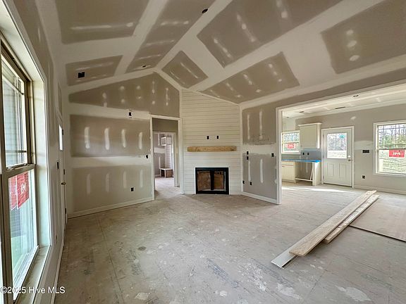 Welcome home to Union Grove Church Road. A spacious front yard leads the way to a charming covered front porch~perfect for a swing or rocking chairs. Step inside to a welcoming family room highlighted by a vaulted ceiling and a corner fireplace with elegant trim and mantle. The dining area, conveniently located just off the kitchen, offers access to the back deck for easy outdoor living. The kitchen features granite countertops, abundant cabinetry, and will come equipped with a stove, dishwasher, and microwave. Privately tucked on one side of the home is the primary bedroom, accented by a vaulted ceiling and complete with a private bath. Here you'll find a double-sink vanity, soaking tub, separate shower with a built-in bench, and a spacious walk-in closet. On the opposite side of the home are two additional bedrooms along with a full hall bath. A walk-in laundry room adds convenience with built-in cubby, a bench seat, and access to the side steps leading outdoors. Relax and unwind on your back deck while enjoying views of the backyard. Welcome to home sweet home.