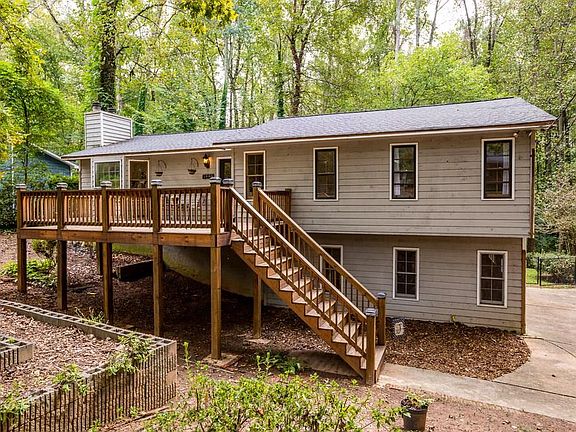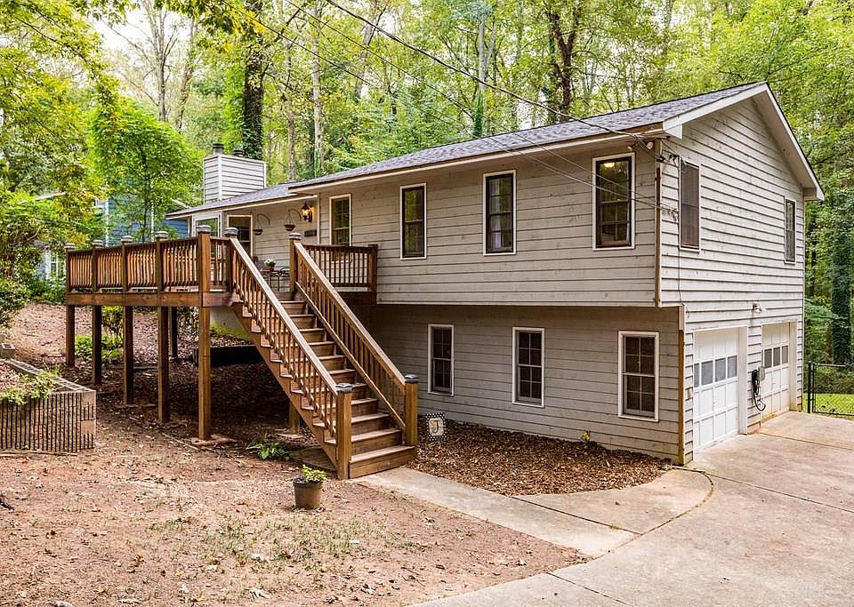 Adorable home in Marietta! Open living room with stone fire place, bay window, and hardwood floors. Kitchen includes subway tile back -splash, breakfast bar, and door leading to spacious deck. Each bedroom has windows, letting in plenty of natural light. Lower level has stone fire place, recessed lighting, and large bathroom with double vanity. Upper and lower level deck overlooks fenced in backyard. Plenty of parking due to long driveway, and 2 car garage. Located in desirable East Cobb school district. SPECIAL FINANCING AVAILABLE!