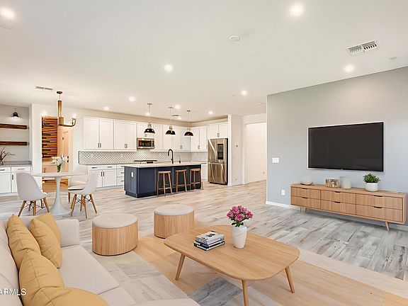 PAID SOLAR at closing. ANNUAL SAVINGS of approx. $1,820 a year! This STUNNING, like-NEW 2022, premium CORNER-LOT home delivers on design & smart-home features. Enter a custom towering entryway, with chandelier & luxury window shades. The chef's kitchen dazzles with wood-surround island, quartz countertops, GE Cafe appliances & walk-in pantry - flowing into the coffee bar, dining & living room. The DOWNSTAIRS bedroom & 3-CAR GARAGE complete the first level. Upstairs, enjoy an oversized primary suite, featuring: frosted glass barn door, walk-in closet & super shower; plus, outfitted laundry room. Outside step onto an extended patio with a ready beautifully landscaped yard. This Rancho Mercado home is surrounded by bountiful parks/playgrounds, all near North-Peoria shopping, dining & TSMC!
