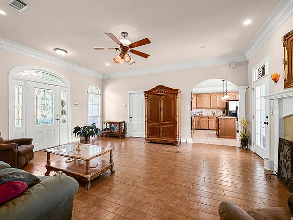 One Acre Lot on Roddy Road! Well maintained home with four bedrooms and two and one half bathrooms. This home offers a split floor plan with the primary bedroom and ensuite being tucked off of the kitchen/dining area while the other three bedrooms are accessed from the family room. The fourth bedroom includes a private half bath. The family room is central in the home and features crown moulding, a ceiling fan and a gas log fireplace. The kitchen has a gas stovetop in the island, a wall over, stainless steel appliances and granite tile countertops. The storage room located off of the garage is currently being used as a hair salon. This area can easily be converted into an office or back to a heated and cooled storage area. Fiberglass inground pool and storage building can be found in the spacious fenced in rear yard. Home has never flooded and is located in flood zone X. Seller to have roof replaced for new buyer prior to closing.