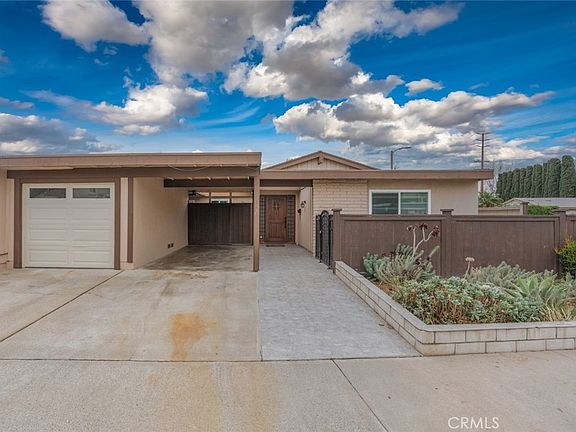 New Price!! Welcome to an updated and move in ready home in the highly desirable and charming community of Broadmoor. Recently renovated with open floor plan, cathedral ceilings boasting wood beams, plus a two sided fireplace between the living room and dining/ kitchen. You will enjoy a single story home on a corner lot with low maintenance landscaping. Wood plank vinyl flooring throughout, newer double paned windows and sliding glass doors. Fancy wood front door and a gated courtyard around three sides of the home, all with new hardscape and fencing. The kitchen and baths have granite countertops and nice cabinets. Plenty of parking with the one car garage and one covered carport space, plus driveway. Interior atium can be used as added living space and lets the light stream in. There is a community pool and park.